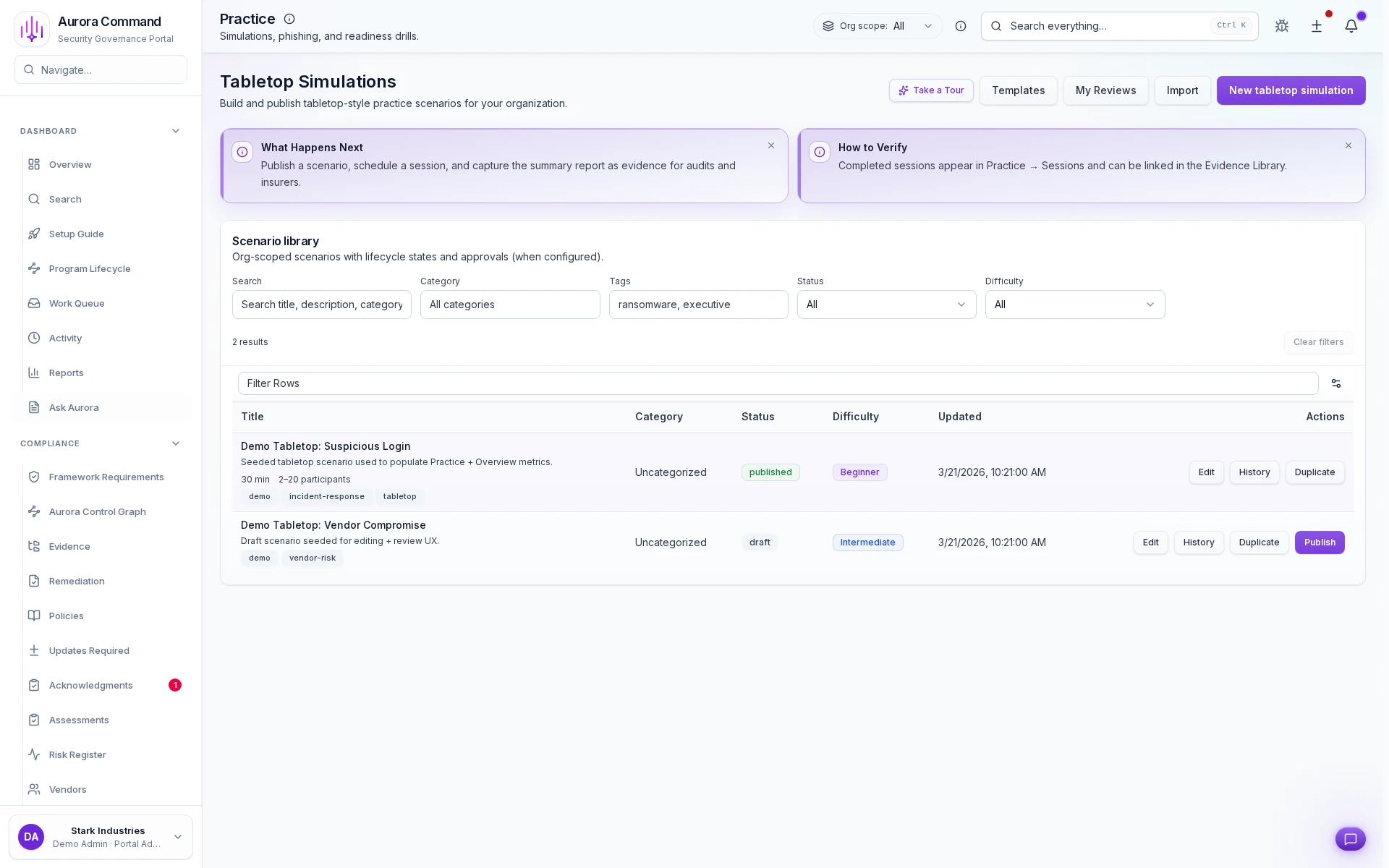 In the live walkthrough, we show template selection, live session execution, and how outcomes become compliance evidence.